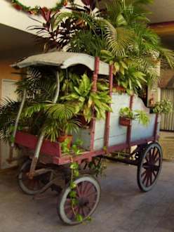 Eine Blumenkutsche zwischen dem Pool & Zimmernim Innenhof, nach dem kleinem Botanischem Garten die zweite Nette Sache zum Anschauen in diesem Hotel