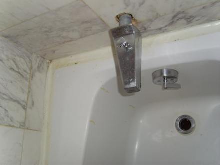 Nahaufnahme vom Wasserhahn & dem Dreck daneben