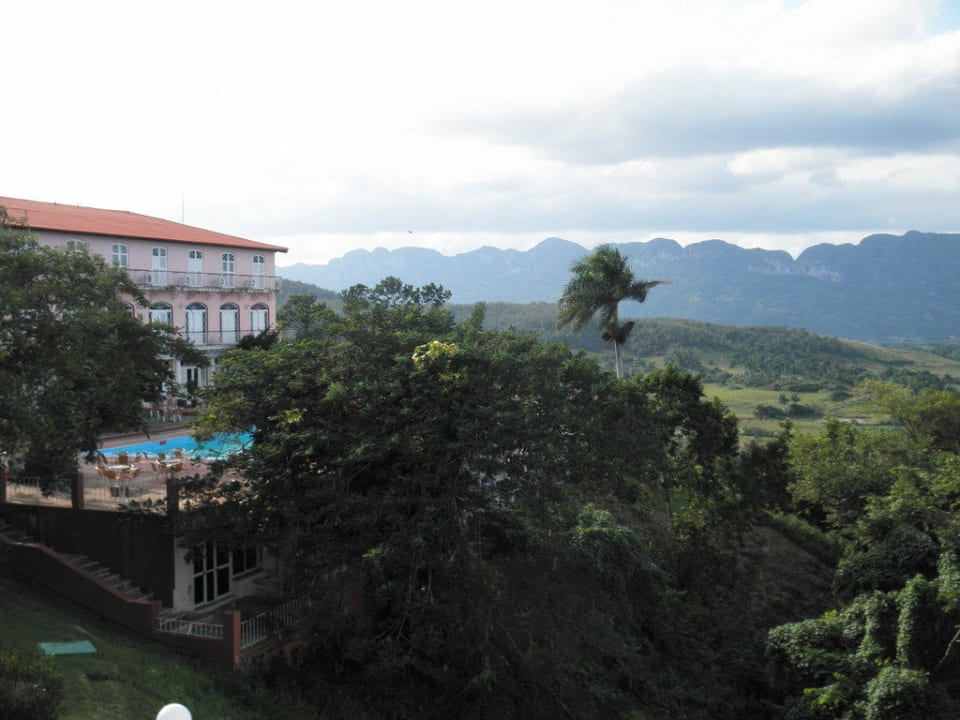 Hauptgebäude und Pool mit Ausblick