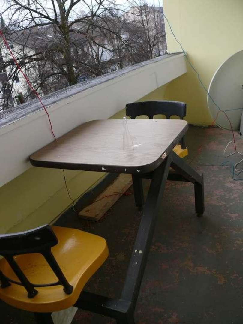 "Verwahrloster" BalkonBlick auf den heruntergekommenen Balkon. Diese "Bank" lädt nicht zum Verweilen ein. Balkontür NICHT abschliessbar!