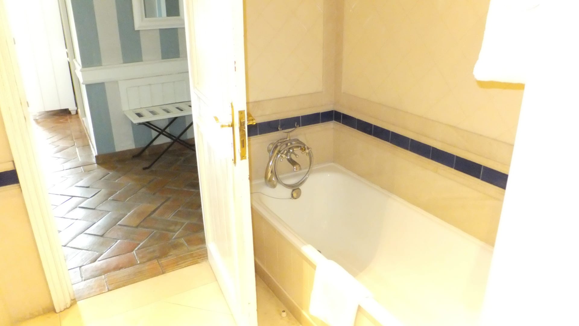 Badezimmer und Blick in Flur