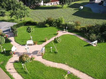 Blick vom Balkon auf den Garten