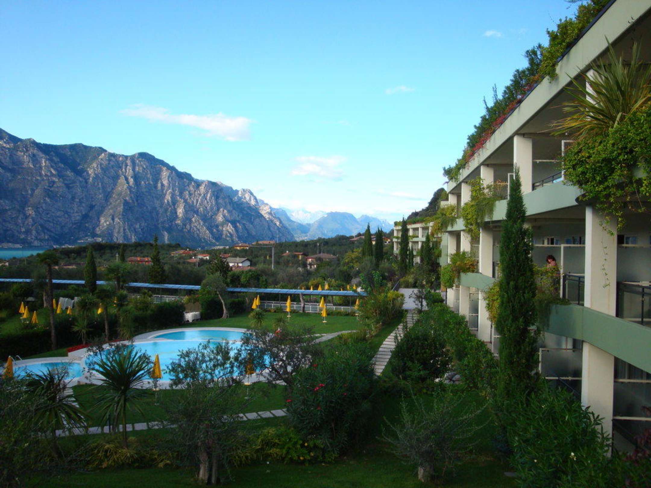 Blick vom Zimmer im Nebenhaus auf einen der drei Pools