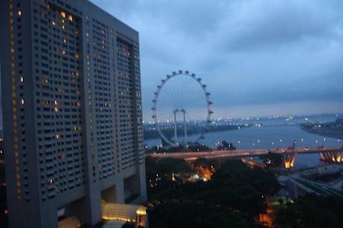 Blick zum Singapore Flyer