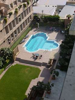 Blick vom 6. Stock auf den Pool