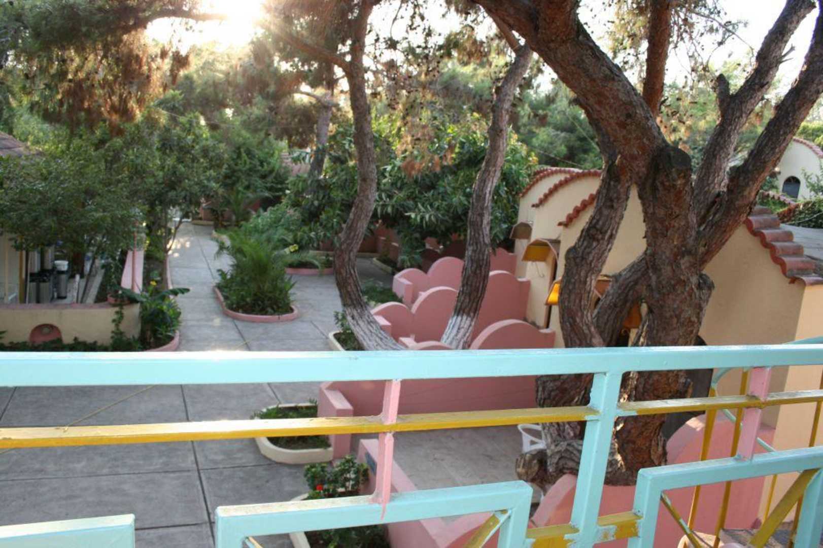 Blick vom Balkon in die AnlageAm Balkon vor dem Zimmer (über Wendeltreppe erreichbar) ließ es sich gemütlich sitzen