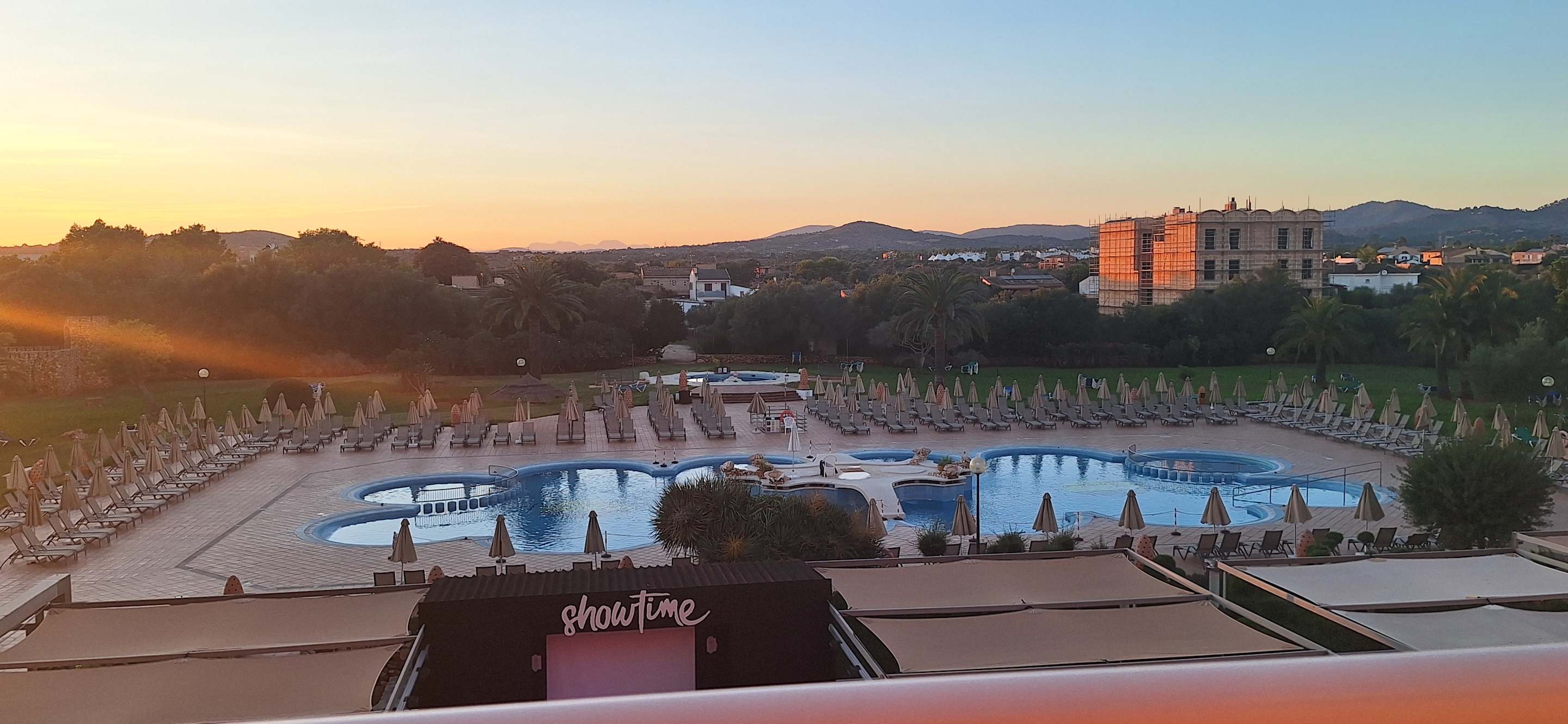 Blick vom Zimmer über das gesamte Außengelände