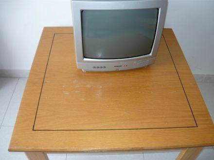 Tisch mit Blasen im Holz