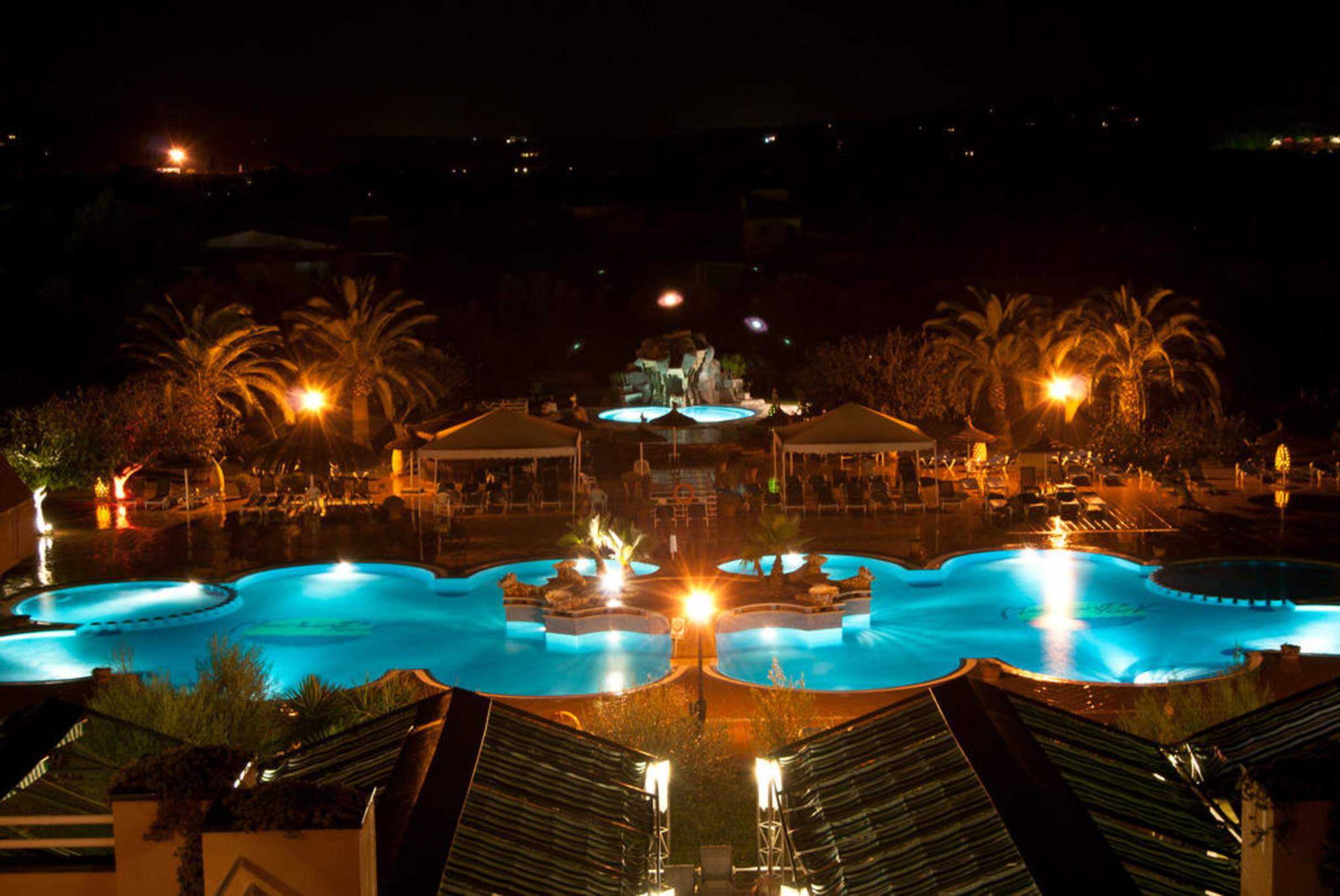 Pool und Gartenanlage bei Nacht