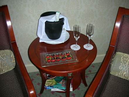 Zur Begrüßung gab es kostenlose Erdbeeren mit Schokolade und Champagner