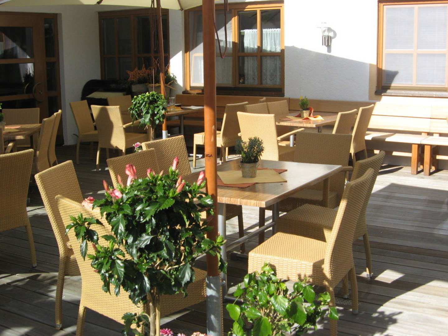 Sitzgruppe neben Hoteleingang Hotel Marten