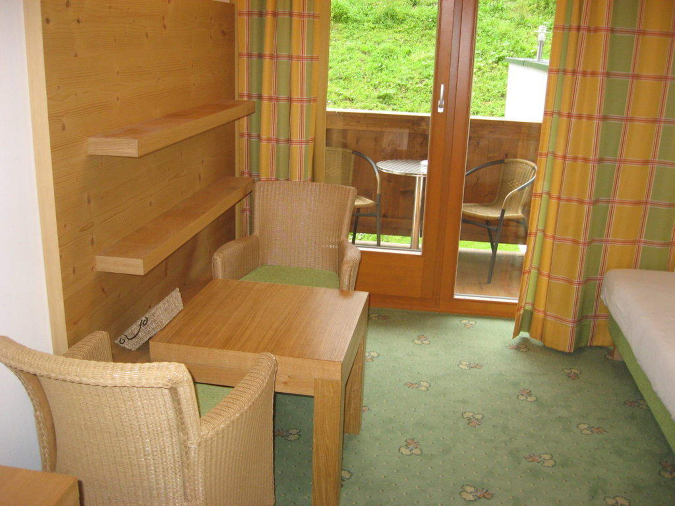 Sitzgruppe und Balkon im Doppelzimmer