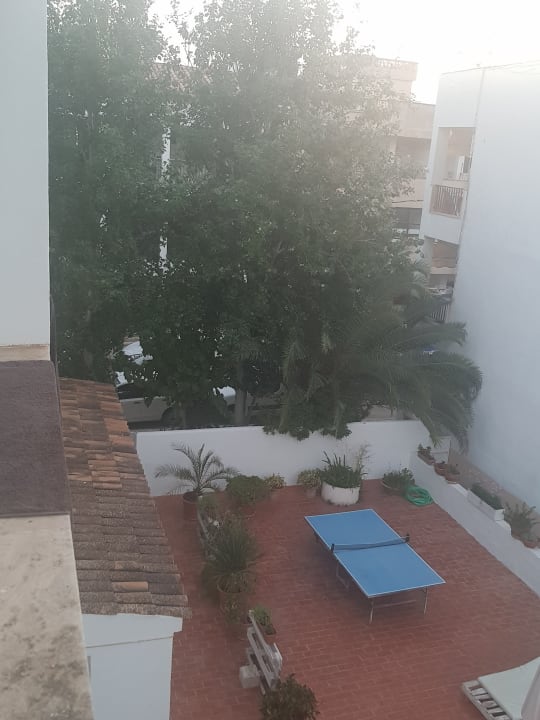 Poolbereich mit Alter verkommender Tischtennis platte