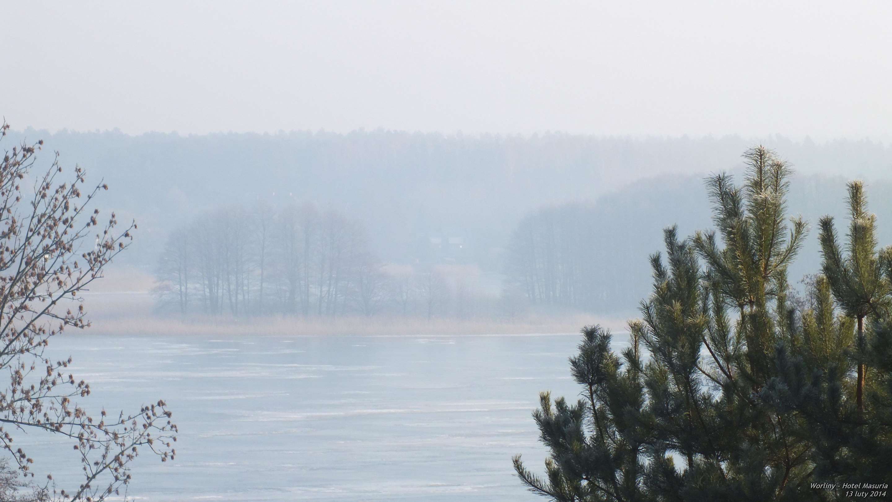 Widok z balkonu na zamarznięte jezioro
