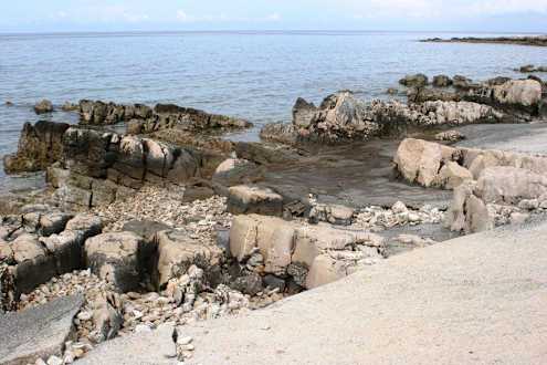 Vorm Hotel Felsplateu und Felsstrand
