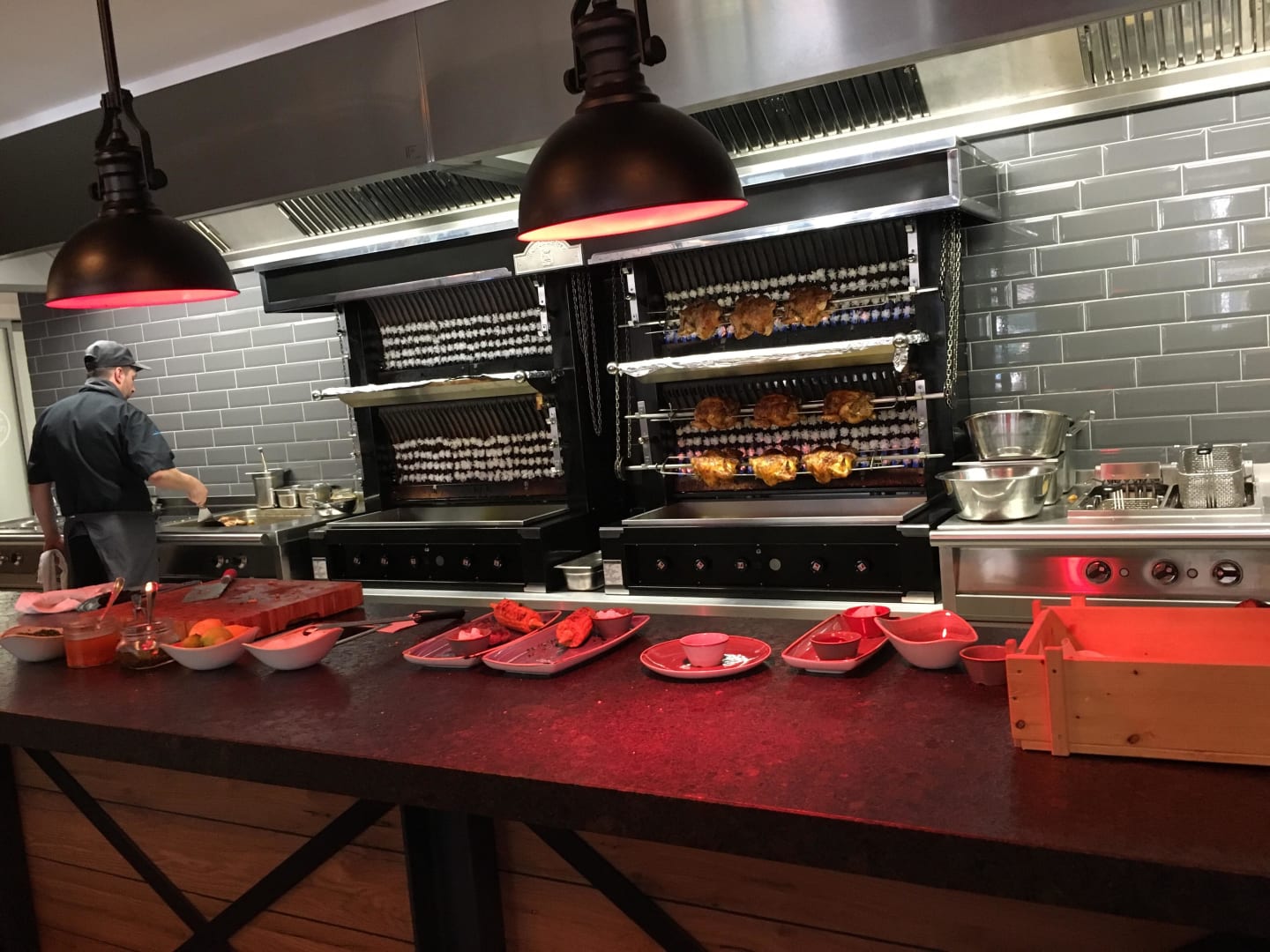 Showküche mit Flammenwand