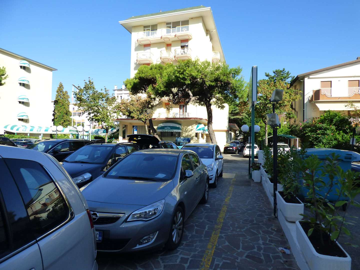 Blick auf das MaxiHeron von der Rückseite d. Heron Hotel Maxi Heron