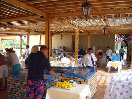 Essen auf der überdachten Terrasse.