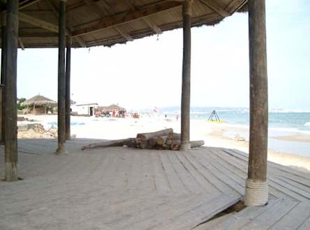 Schrottiges Strandhaus. Betreten mit viel Gefahr verbunden. Denn viele Bretter waren schon durchgetreten und gesplittert. Hinter dem Haus stapelte sich der Müll.