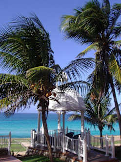 Das Bild ist in der Anlage des Melia Varadero entstanden. Auf der vorstehenden Klippe steht dieser Pavillon, in dem Hochzeiten statt finden.