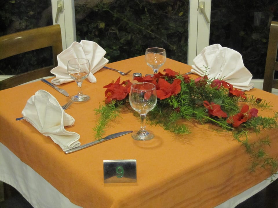 ...auf Nachfrage, da uns die Tischdekoration so gut gefallen hatte, bekamen wir unseren Tisch an jedem Abend so schön eingedeckt! Fragen Sie nach, man reagiert auf Ihre besonderen Anliegen!