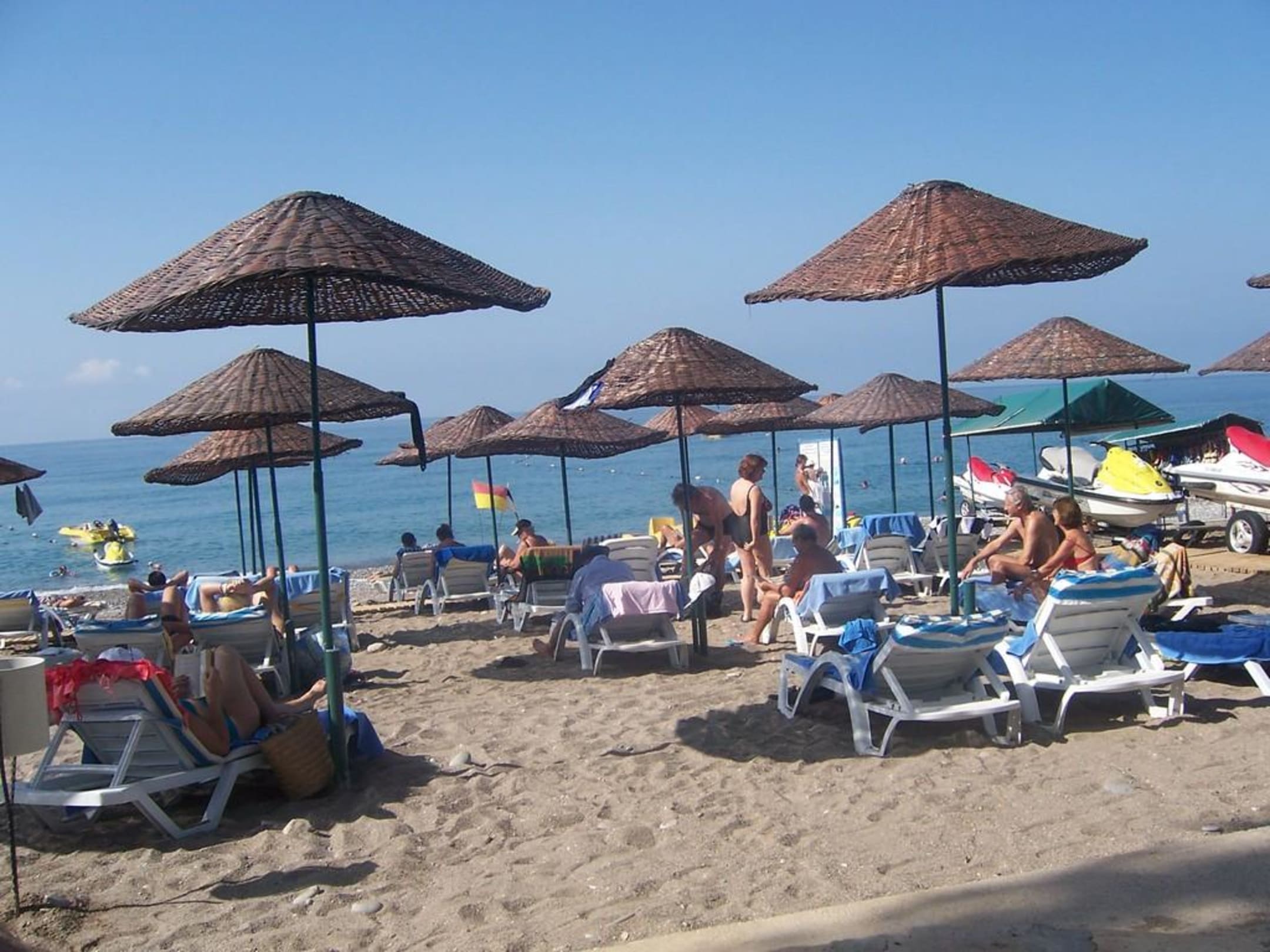 Fest verankerter Sonnenschirme, die kaum Schatten spenden.