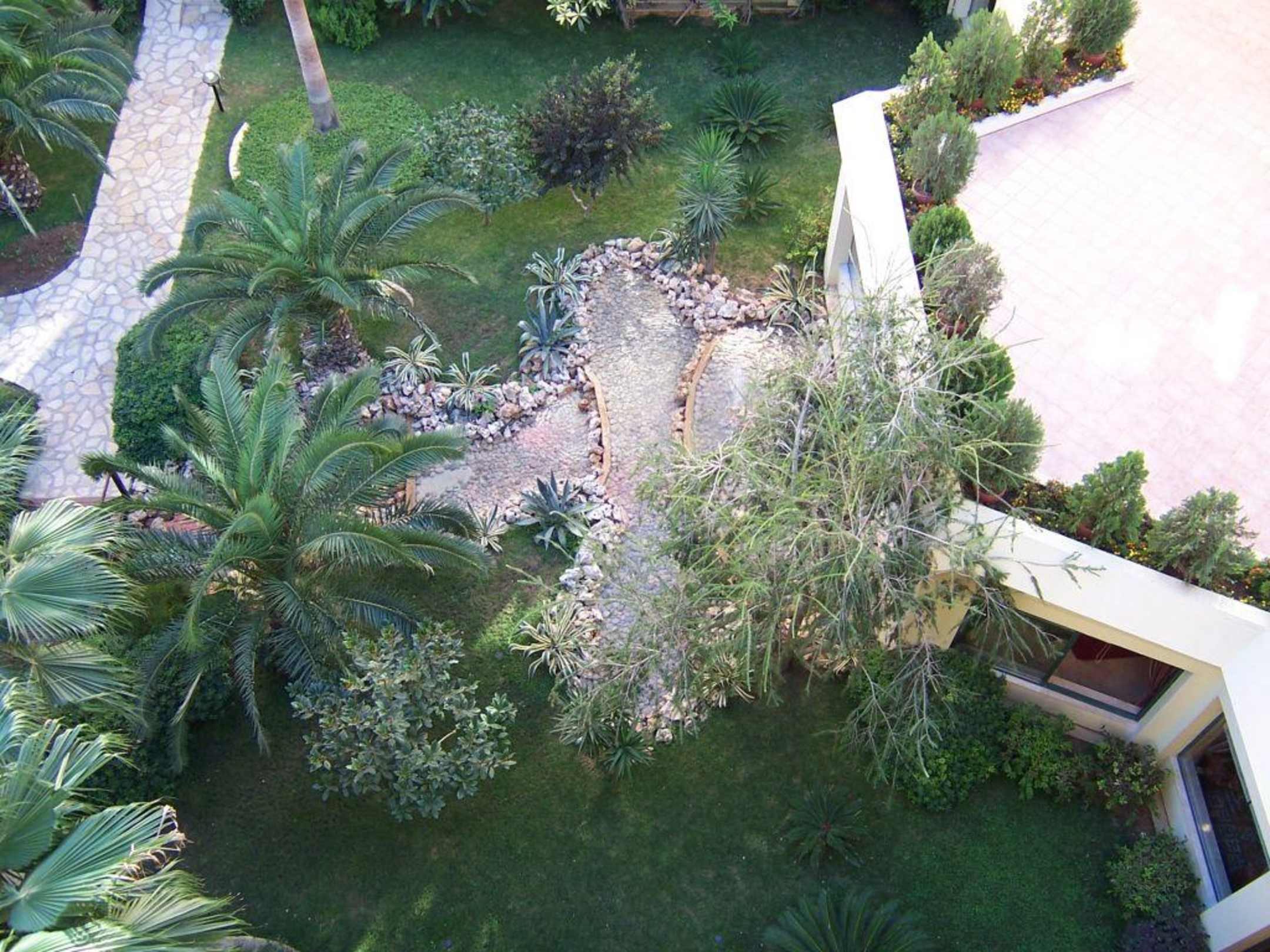 Blick auf den Garten des Innenhofs