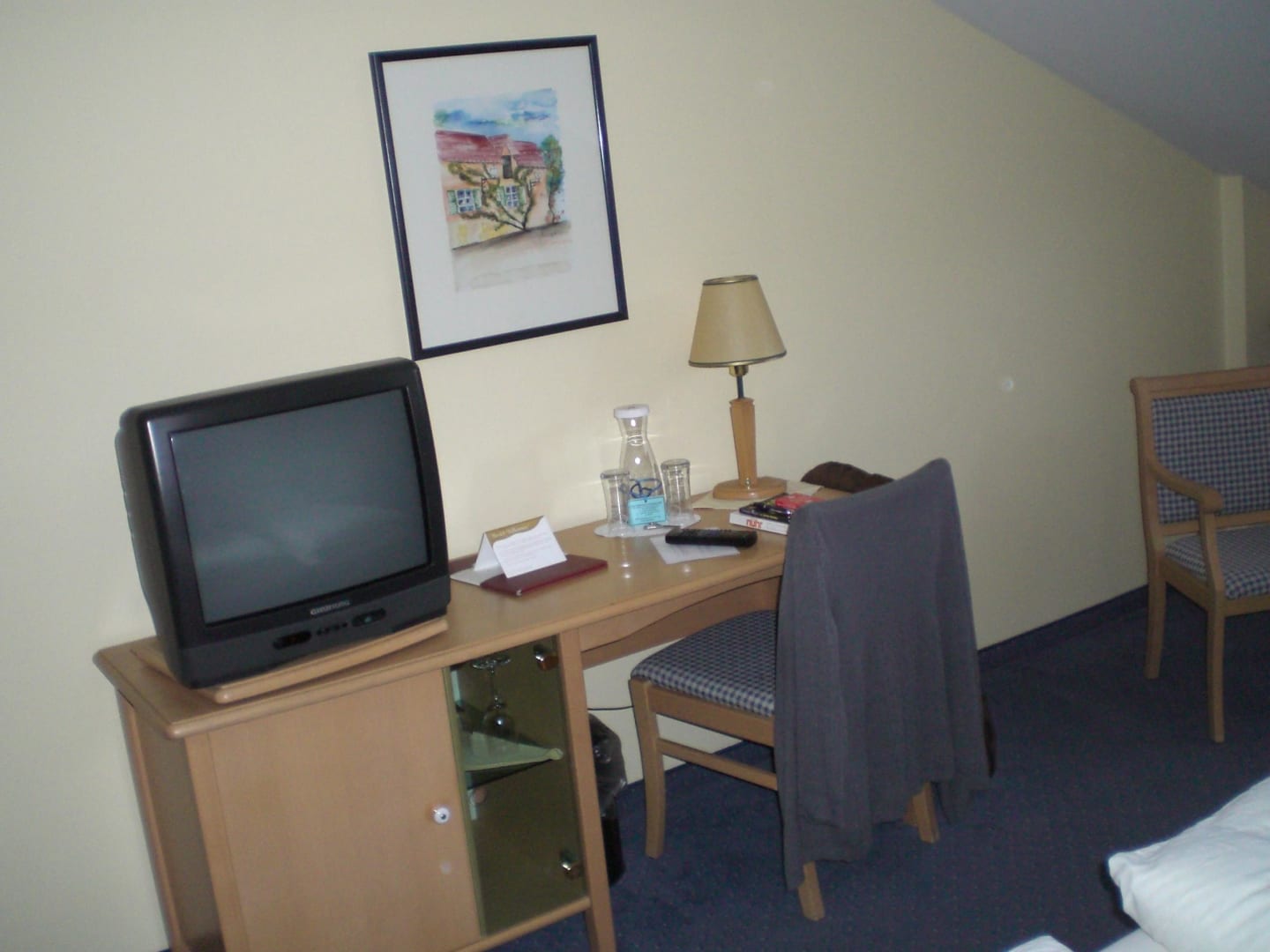 Schreibtisch mit Röhrenfernseher