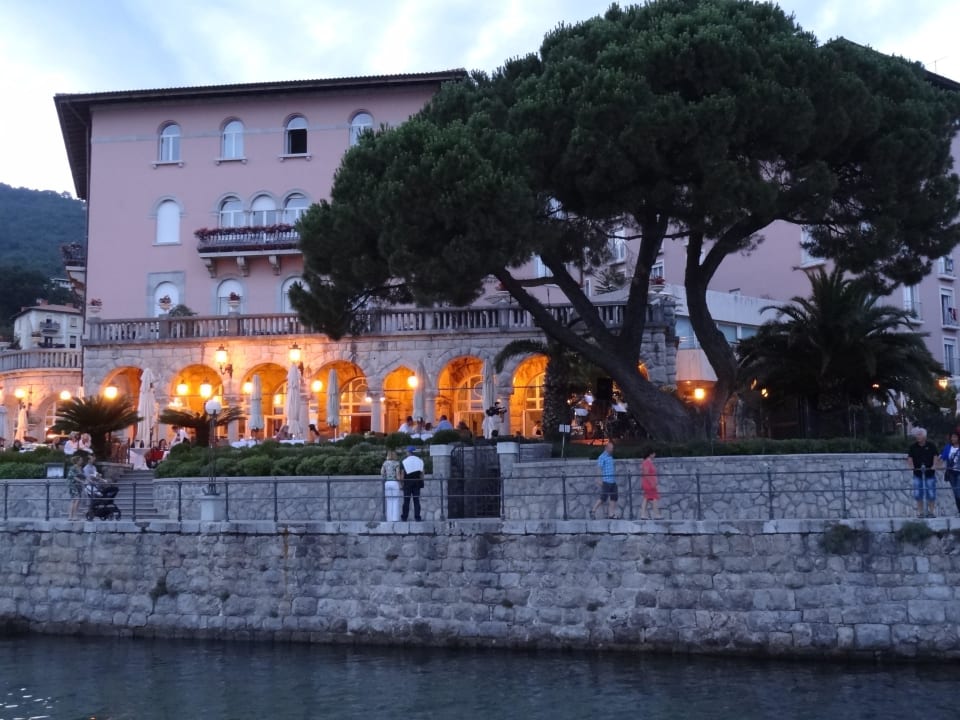 Blick von der Adria auf die Hotelterrasse