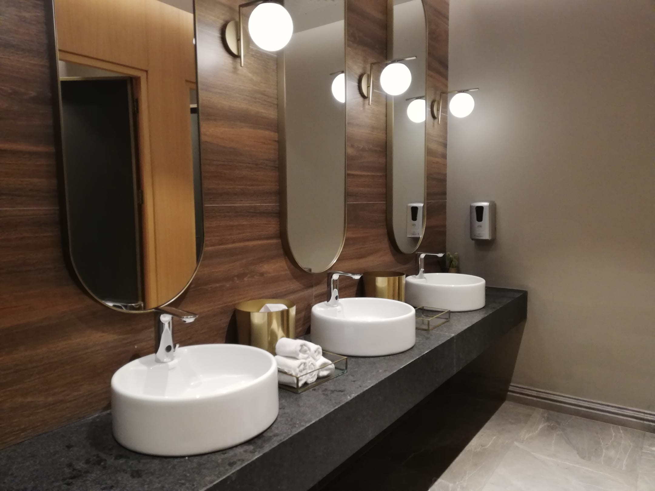 Waschbecken im im Damen WC im Restaurantbereich. Sehr sauber und immer frische Handtücher