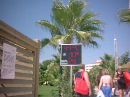16.August 14.00h, 44 Grad Temperatur,30 Grad Wasser(Meer)u. 29 % Luftfeuchtigkeit