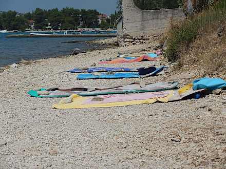 Etwa 30 Meter FKK Strand 50 meter vom Hotel entfernt. Natürlich wurde das von uns genutzt. Lieber hier liegen als in 8 er Reihe am Hauptstrand wo die Leute fast gestapelt lagen und quäckende Kleinkinder bei 39 Grad ohne Schatten