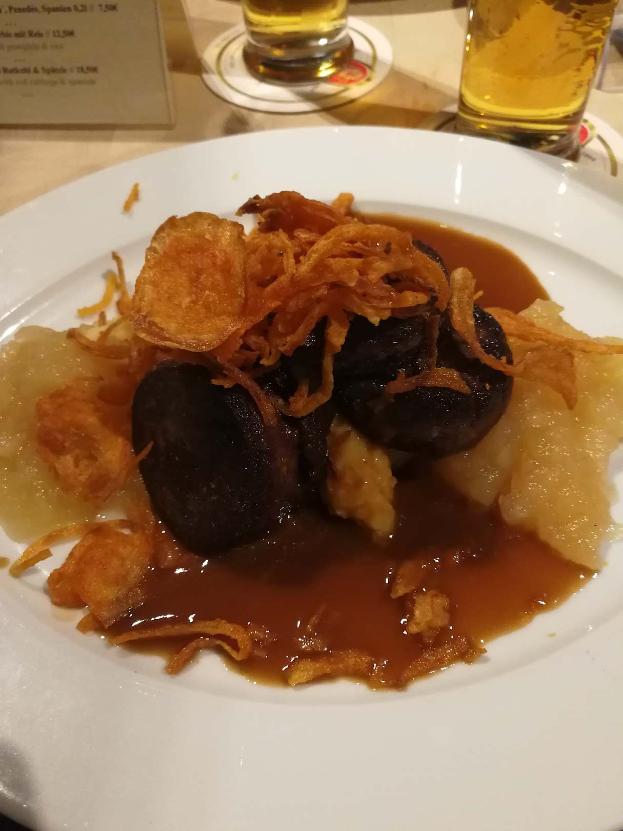 Himmel un Ääd (Kösche Spezialität) - (Blutwurst, Zwiebeln, Kartoffelpüree und Apfelmus)