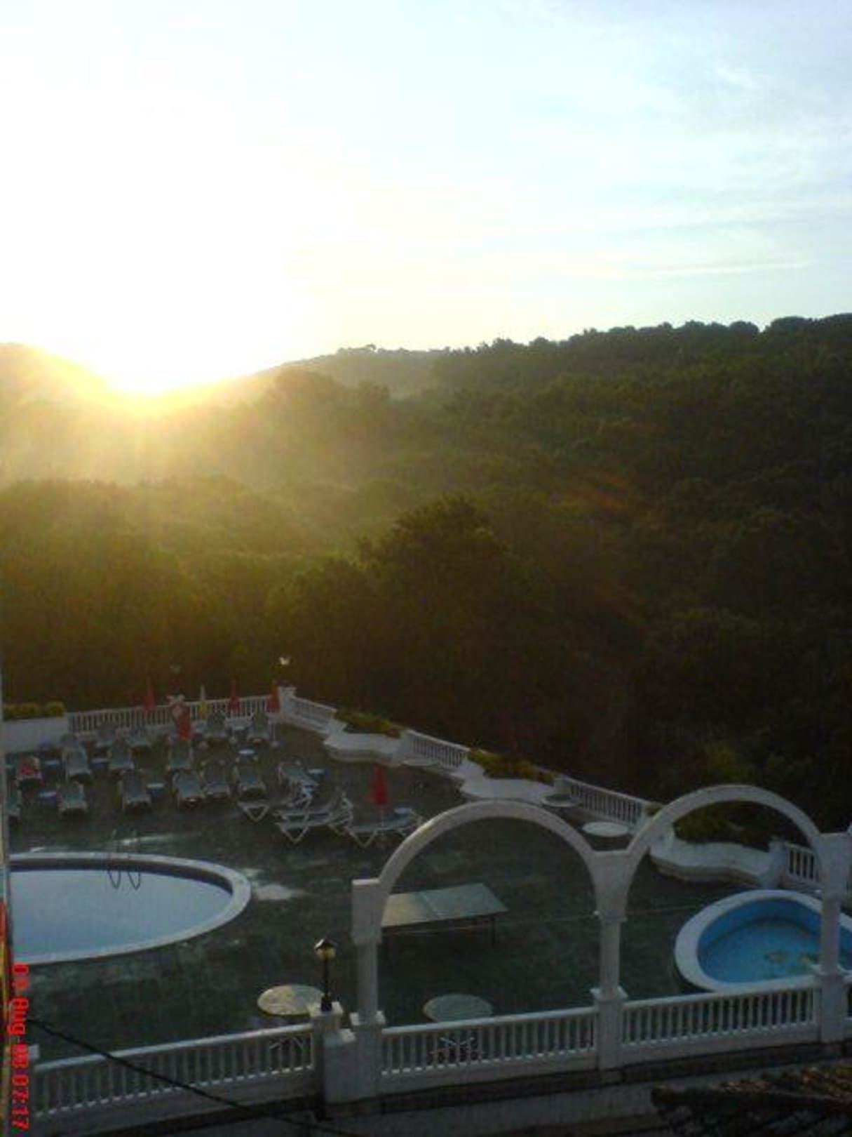 SonnenaufgangDas Bild habe ich bei Sonnenaufgang von unserem Balkon aus gemacht. Ein kleines Stück des Poolbereichs ist zu sehen