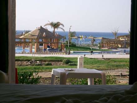 Der Ausblick wenn man im Bungalow im Bett liegt