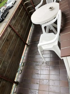 Der Balkon von unserem Zimmer. Kissen für die Stühle lagen im Schrank im Zimmer.