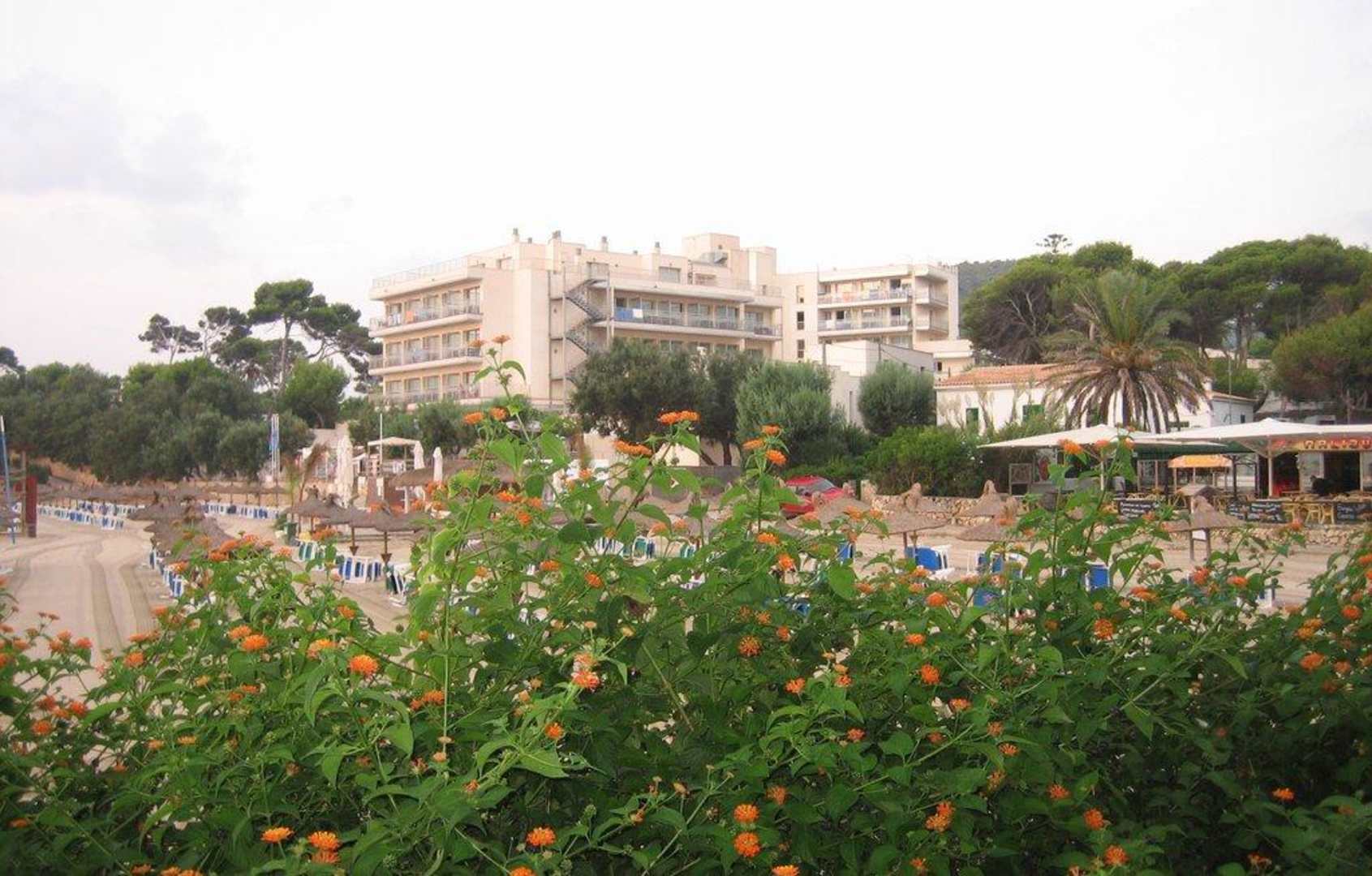 Blick aufs Hotel und Strand davor