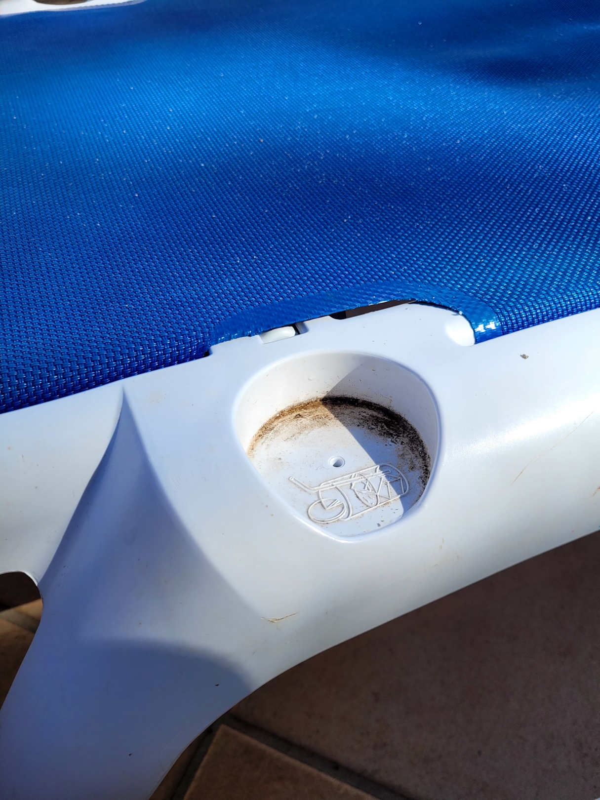 Becherhalter der Liege vollkommen verdreckt