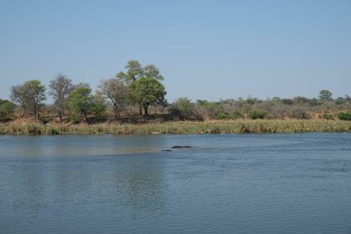 Direkt am Okavango River (darin viele Hippos)