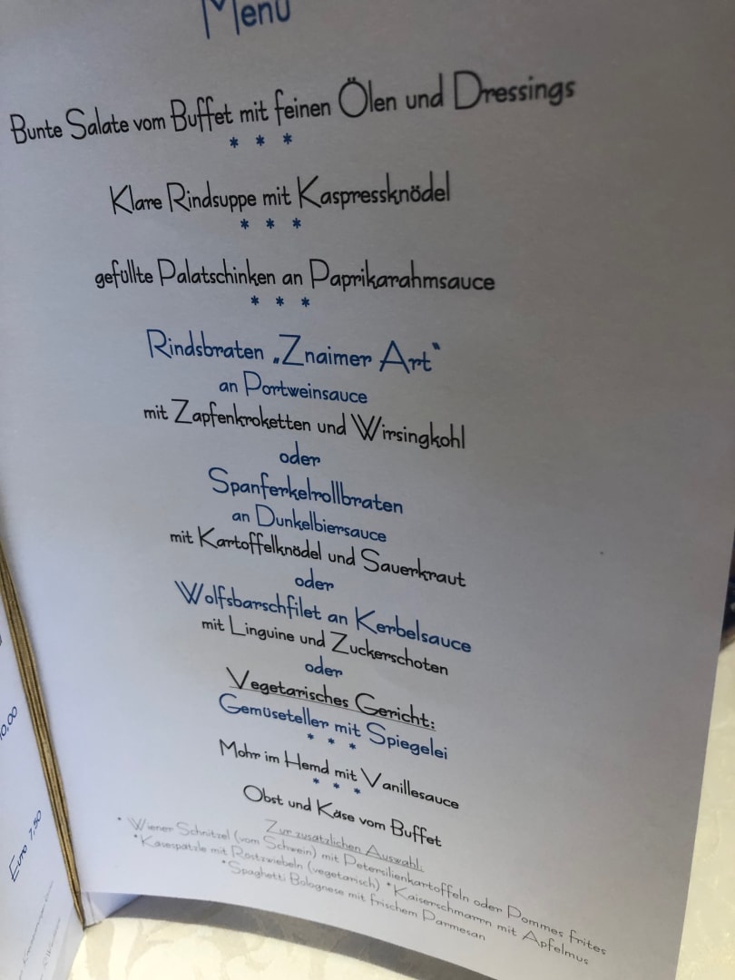 Menü am Abend