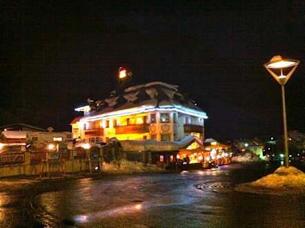 Das Hotel bei Dunkelheit