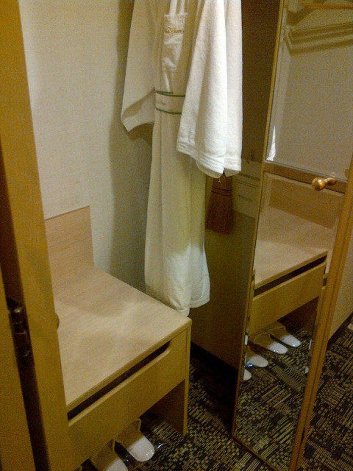 Schrank mit Bademanter und Pantoffeln