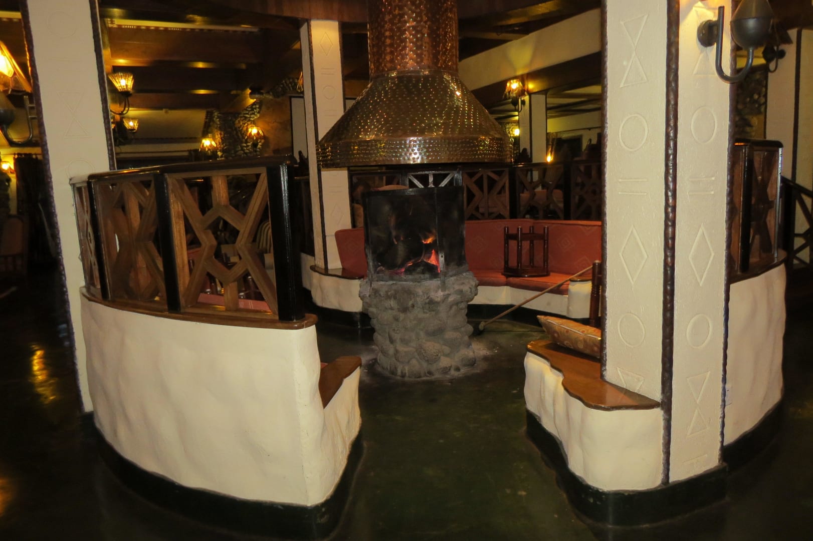 Sitzgelegenheiten am Kamin in der Nähe der Bar