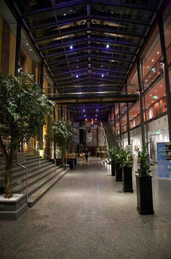 Bereich zwischen dem Altbau (links) und dem Neubau. Sehr schön gelungene Dachkonstruktion die den Raum zusammen mit der langgezogenen Treppe prägt.