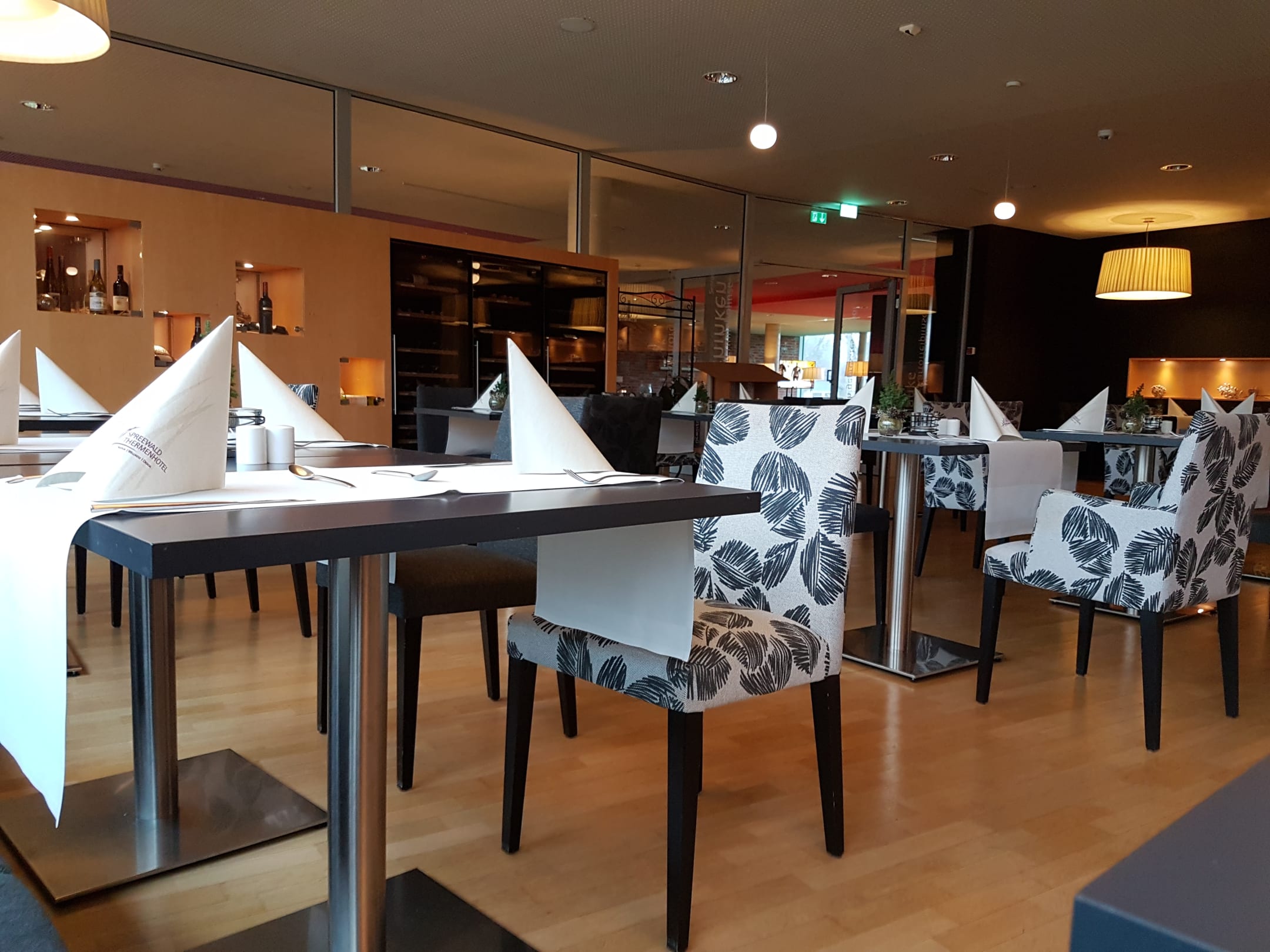 Gastrosehr kleiner verwinkelter Frühstücksbereich, wirkt nur durch Spiegeloptik