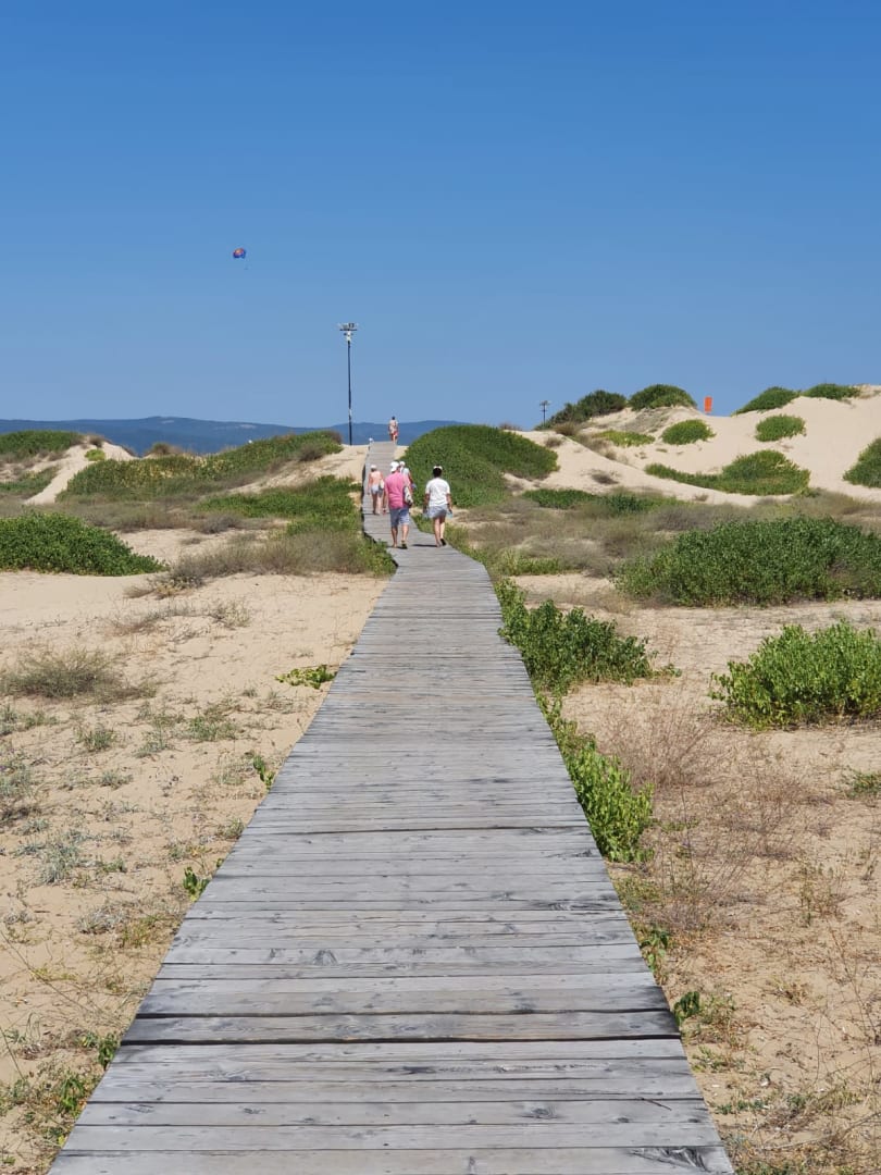 über den Steg und Sanddüre zum Strand 600 m