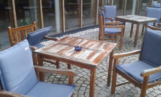 Stoliki przed hotelem