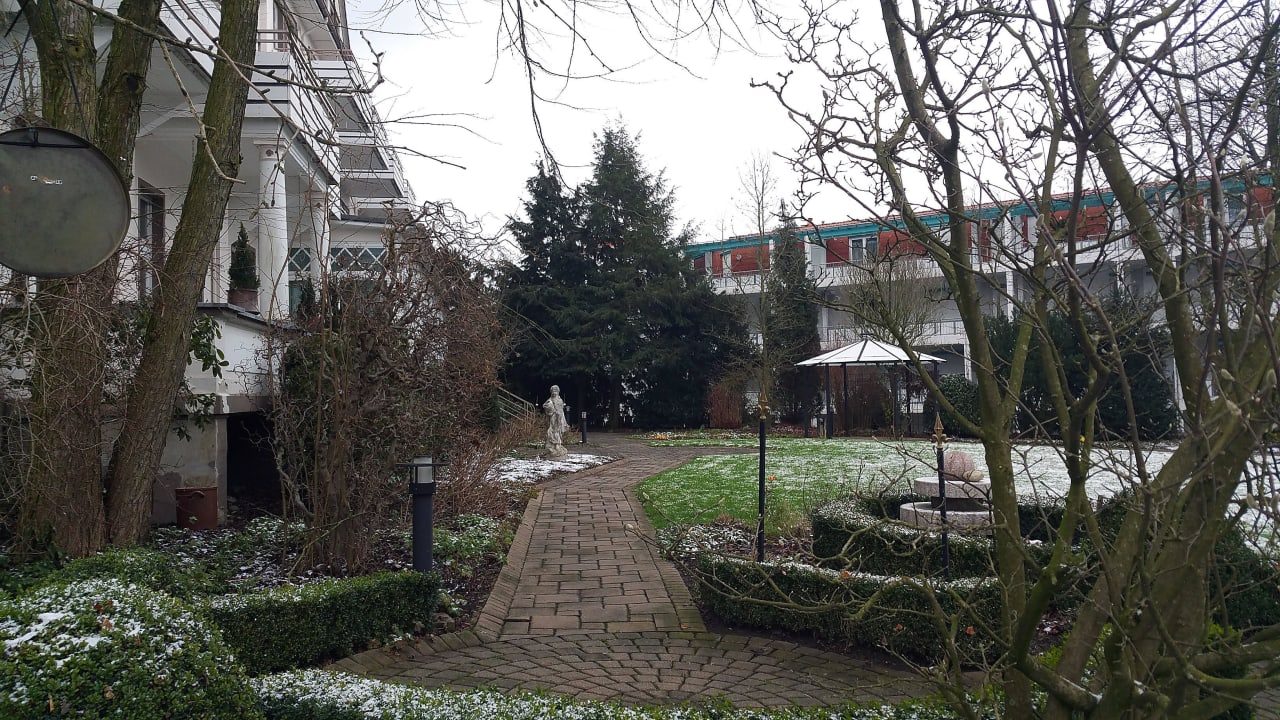 Garten mit gegenüber liegender Klinik