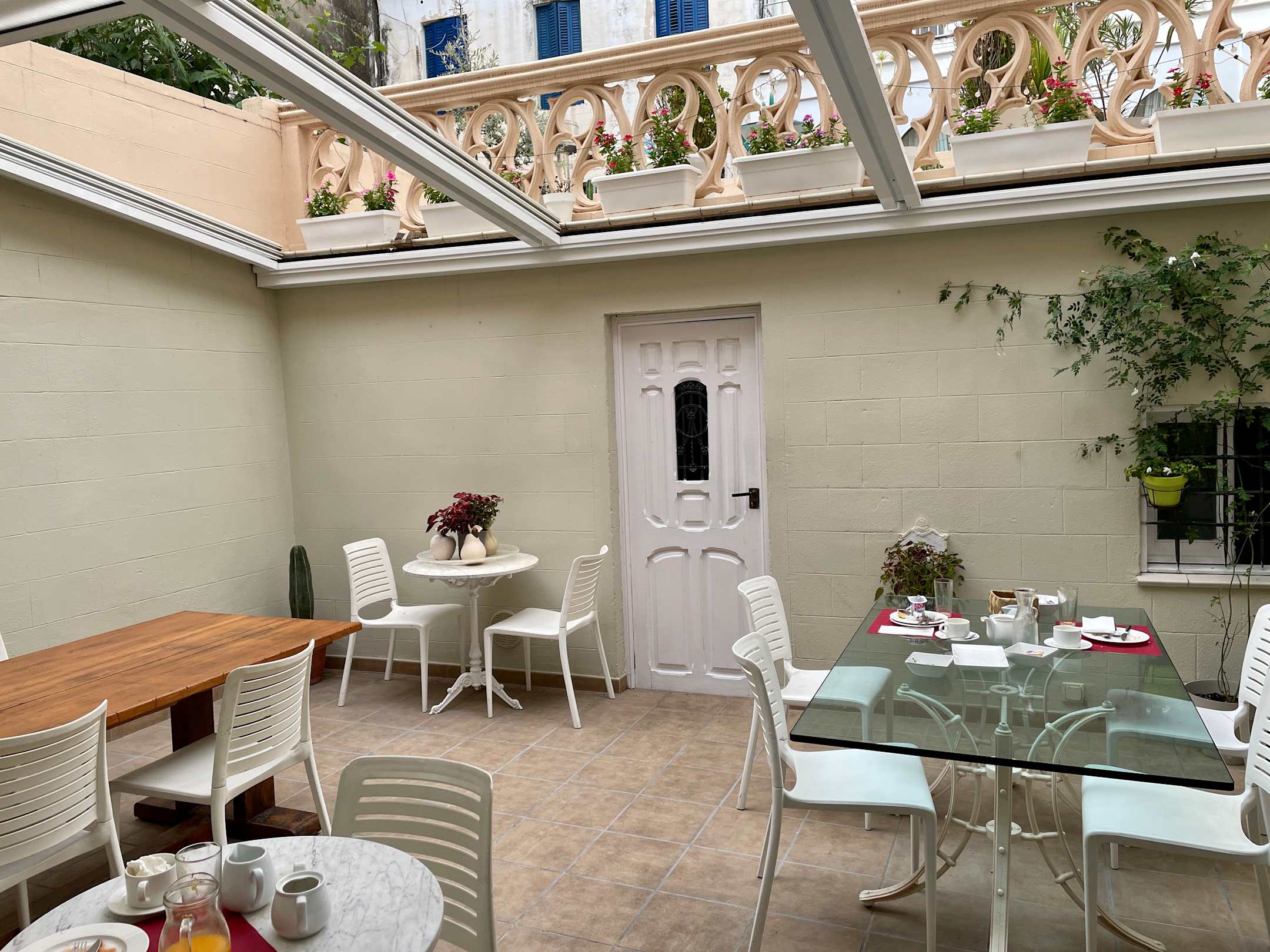 Frühstück im überdachten Innenhof.