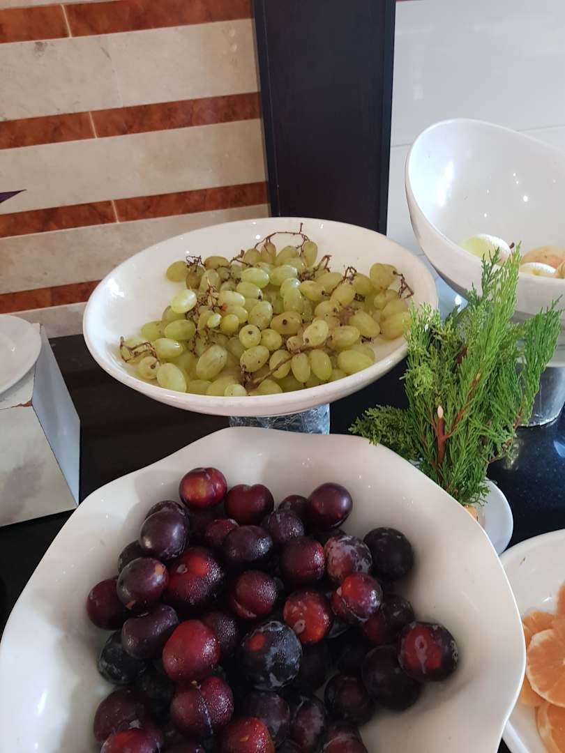Verdorbene Weintrauben beim Abendessen im Hauptspeisesaal.